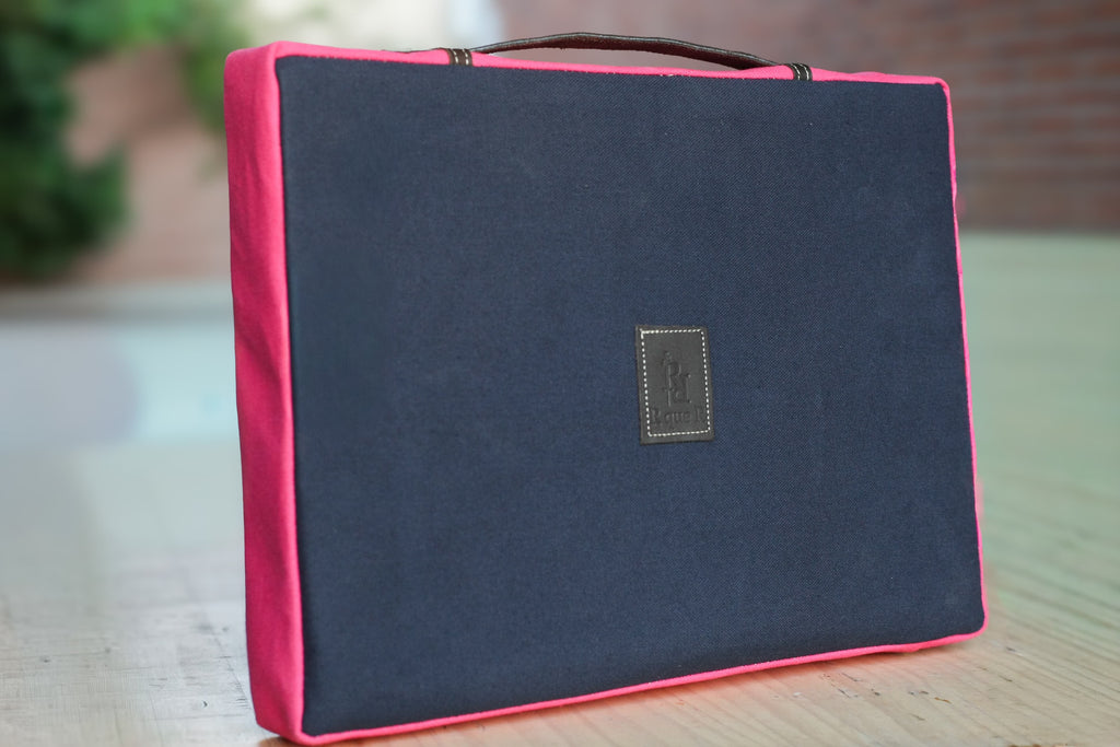 Calcetín azul marino de canalé con logo bordado en fucsia.