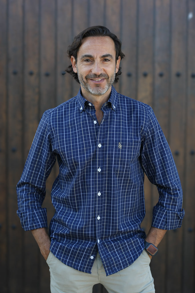 Camisa hombre azul marino de cuadros blancos RqueR.