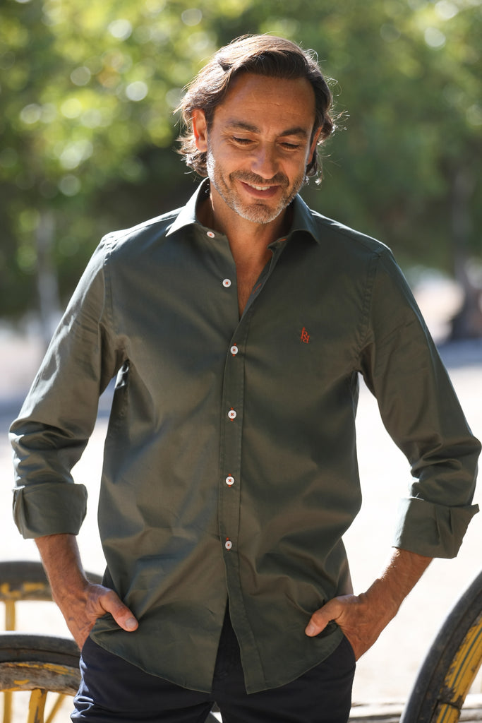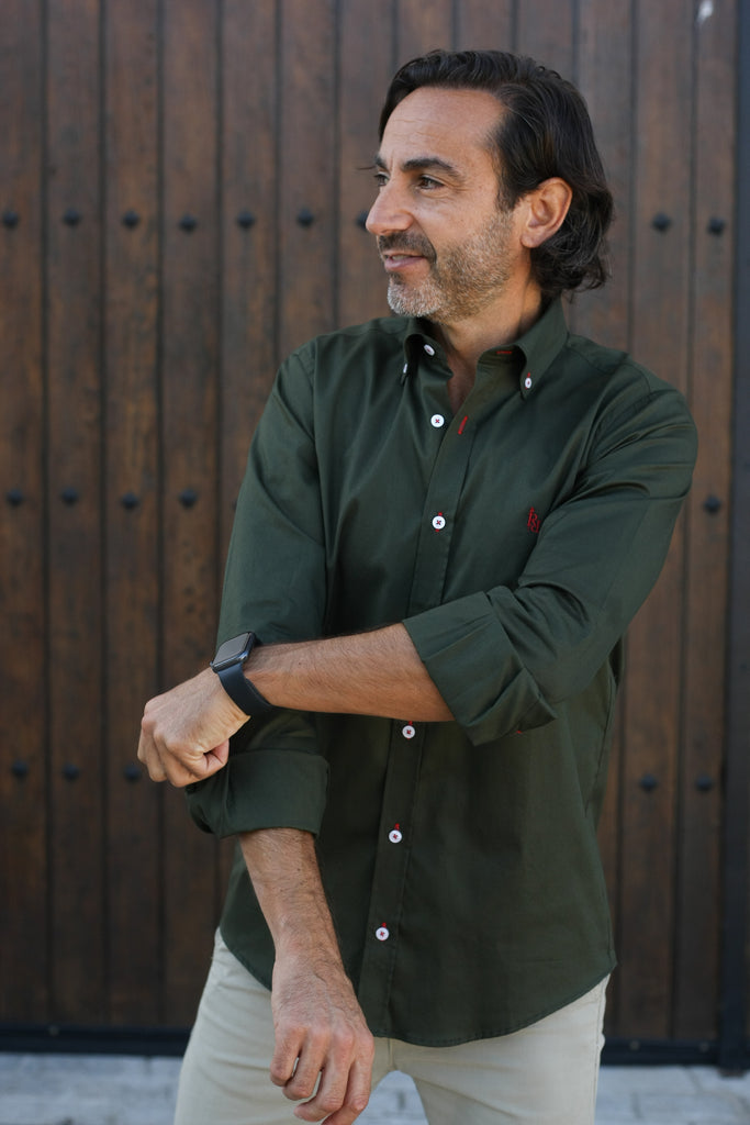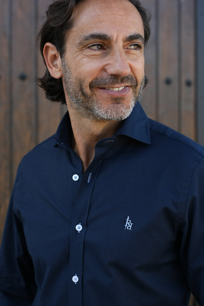 Camisa hombre Oxford azul marino con bandera de España RqueR.