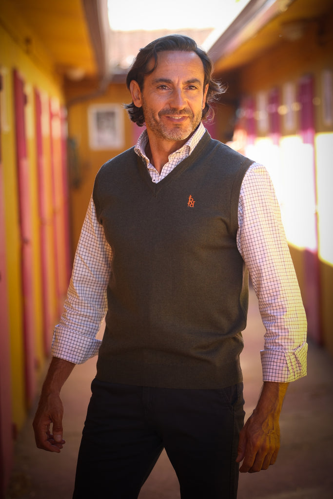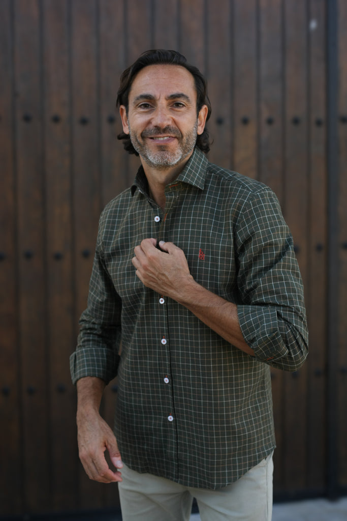 Camisa hombre beige de cuadros azul y marrón RqueR