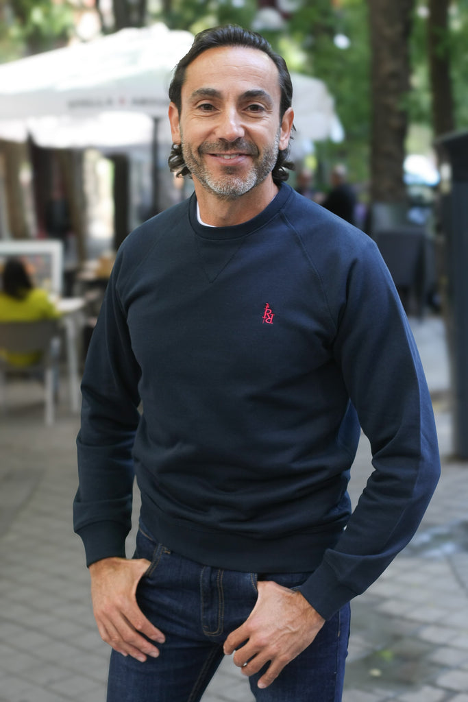 Sudadera azul marino de algodón orgánico cuello redondo RqueR