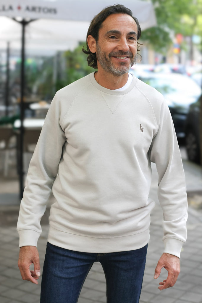 Sudadera beige de algodón orgánico cuello redondo RqueR