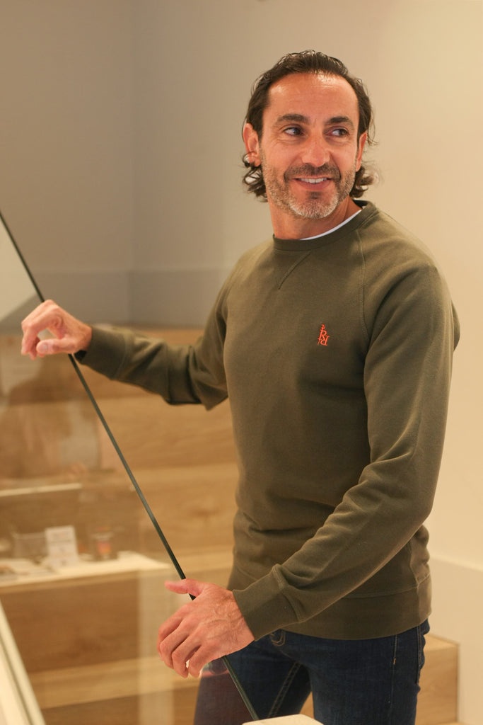 Sudadera verde musgo de algodón orgánico cuello redondo RqueR